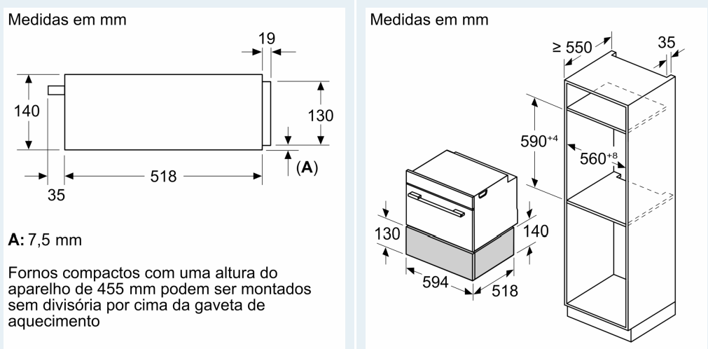 Dimensões do nicho de encastre (A x L x P): 140 mm x 560 mm - 568 mm x 550 mmencastre > gaveta de aquecimento614.50NovoProduto disponível €614,50