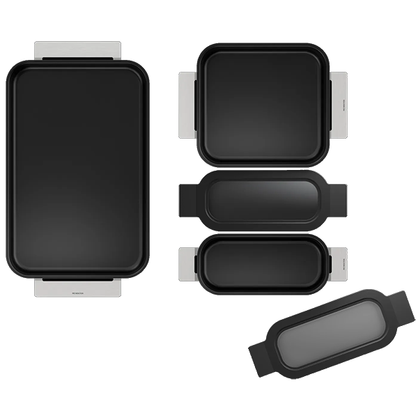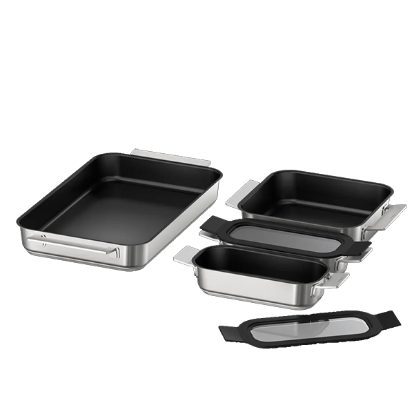 2 x assadeiras pequenas flexíveis com tampa de vidro:30 x 11 cm (parte superior incluindo alças) / 20 x 7,5 cm (parte inferior) |