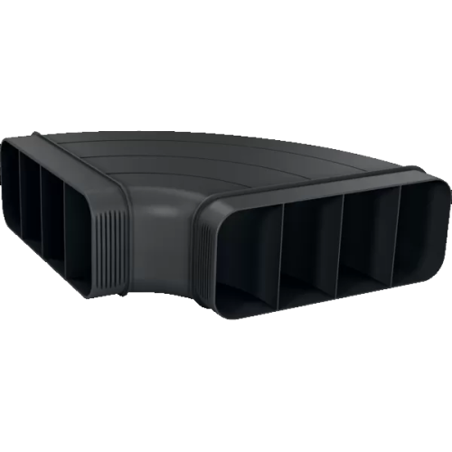 Otimizado aerodinamicamente para minimizar perdas de pressão e maximizar a velocidade do fluxo de ar. Fácil de cortar e de unir através do elemento de ligação de tubos planos. |