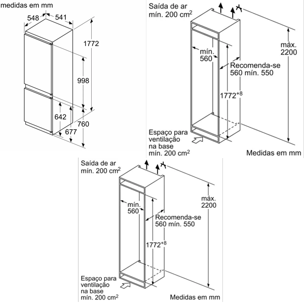MEDIDAS | Aparelho (A x L x P sem puxador): 177.2 x 54.1 x 54.8 cm | Nicho (A x L x P): 177.5 cm x 56.0 cm x 55.0 cm