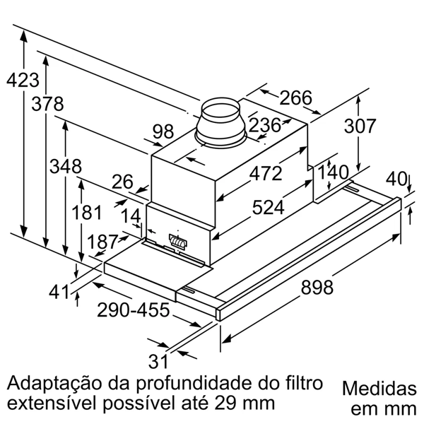 Altura mínima do produto em recirculação de ar: 378 mm |