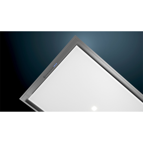 CONFORTO | Sensor climateControl | Ventilação com desligar automático após 10 minutos | Função Intervalo: disponível através da app Home Connect. | Aspiração perimetral | Protecção do filtro em vidro | Filtro metálico, lavável na máquina de lavar loiça | Moldura interior em aço inox de fácil limpeza | Indicador de saturação do filtro metálico ou filtro de carvão | Iluminação LED por detrás do vidro | Temperatura / aparência da cor da lâmpada: 3500 K | Intensidade iluminação: 772 lux | Função dimmer - regulação da intensidade da iluminação | Função softLight - iluminação gradual ao ligar e desligar a luz