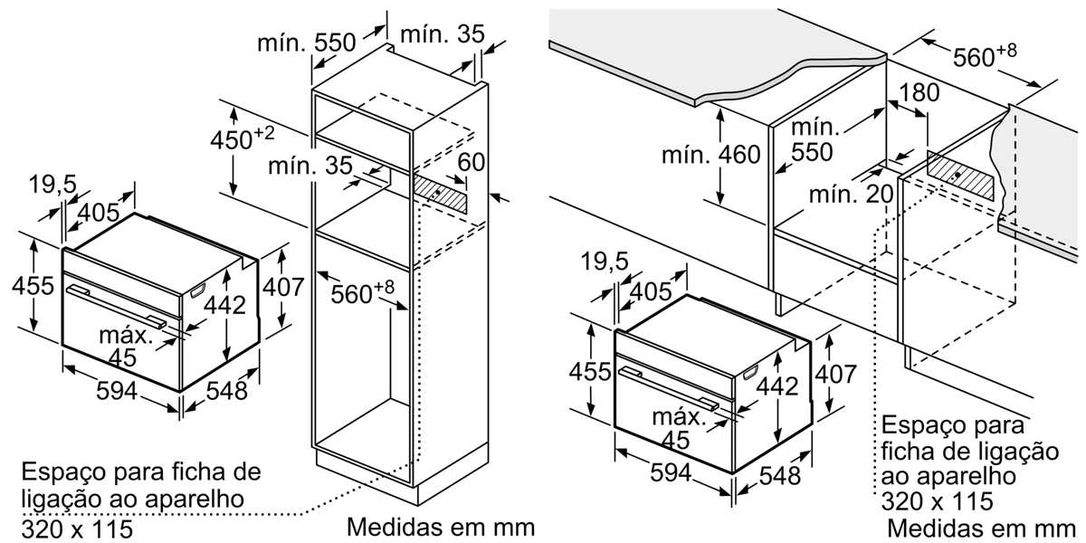Dimensões do nicho (AxLxP):450-455 x 560-568 x 550 mm