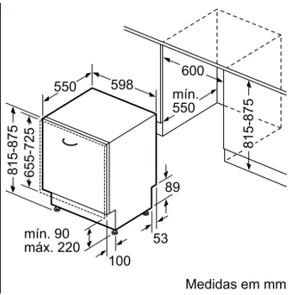 Largura mínima de instalação: 600 mm |