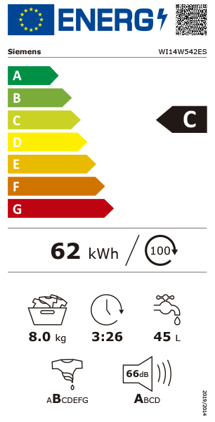Energia² / Àgua³: 62 kWh / 45 litros |