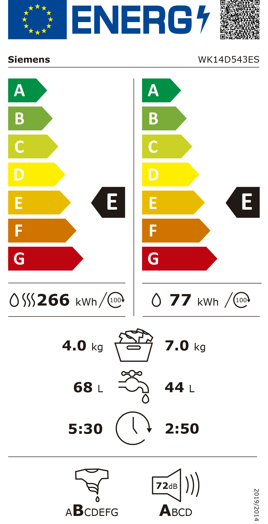 Energia / Água Lavar e Secar: 266 kWh / 68 litros |