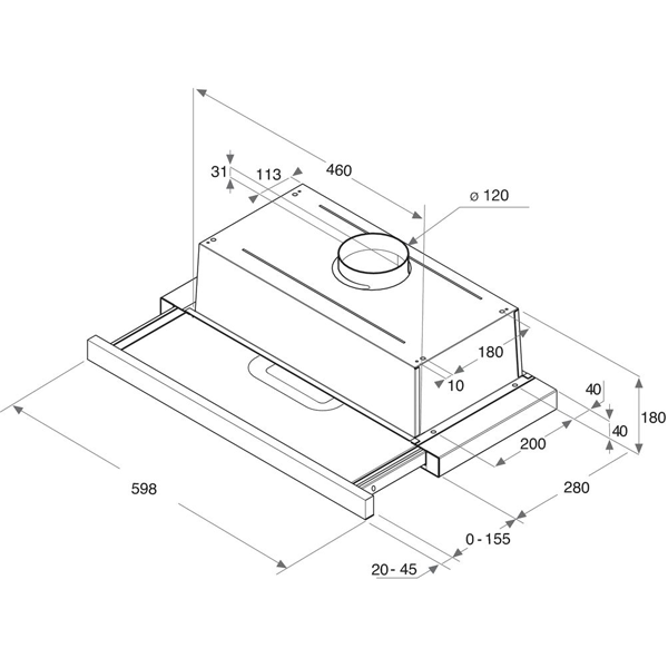 Classe de eficiência energética: D | Classe de eficiência energética ventilação: E | Classe de eficiência energética filtro de gordura: D | Classe de eficiência energética iluminação: D | Consumo Total Energia Anual (kWh): 61.6 | Nível de ruído (dBA): 62 | Dimensões (axlxp): 18x59.8x30cm | Tipo de exaustor: Telescópico | Tipo de controlo: Slider | Tipo de controlo | Tipo de lâmpada: LED | Número de lâmpadas: 2 | Número de velocidades: 3encastre > exaustão encastre131.55NovoProduto disponível €131,55