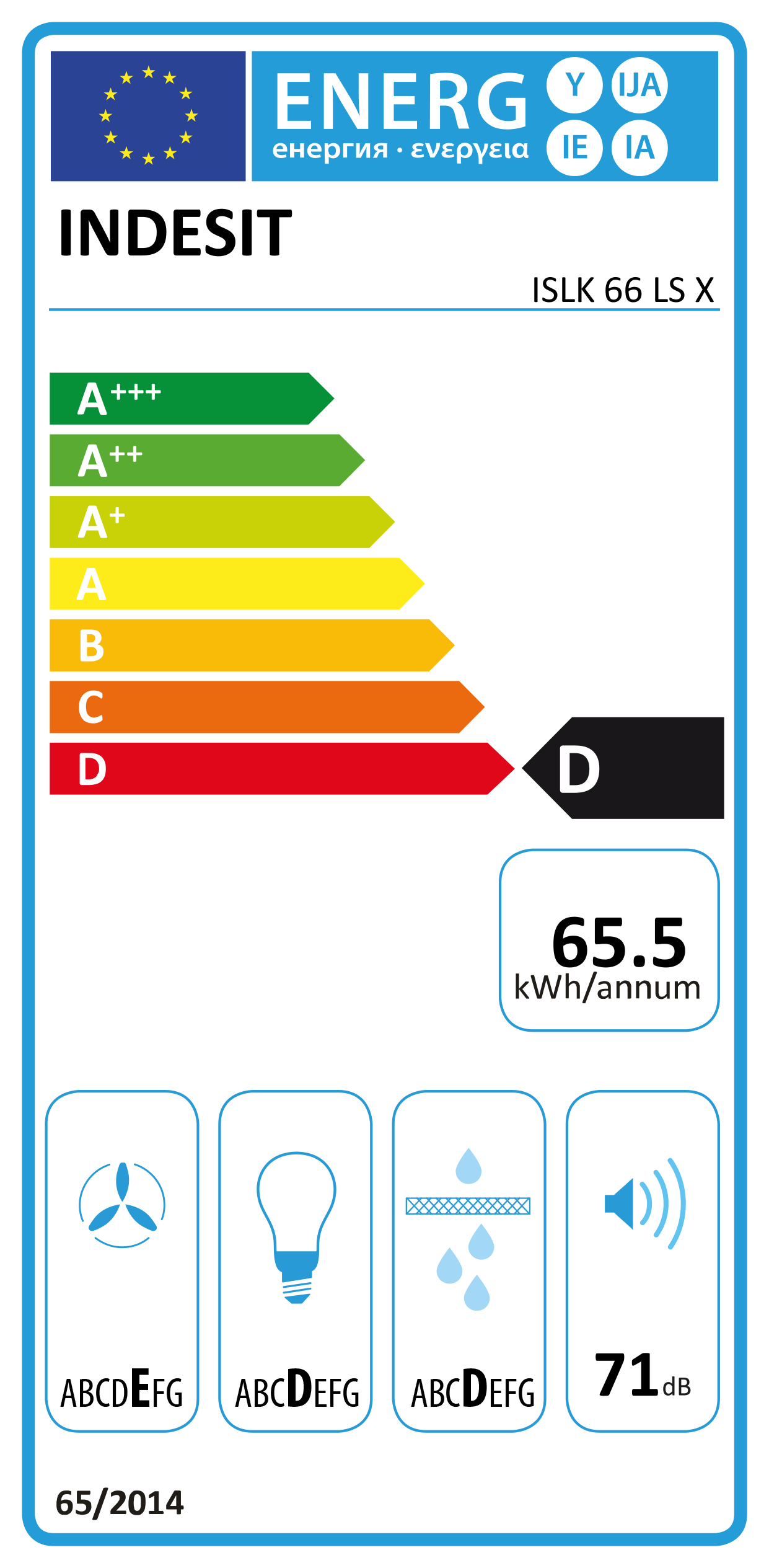 Classe de eficiência energética: D | Classe de eficiência energética ventilação: E | Classe de eficiência energética filtro de gordura: D | Classe de eficiência energética iluminação: D | Consumo Total Energia Anual (kWh): 65.5 | Nível de ruído (dBA): 71 | Dimensões (axlxp): 13.2x59.9x51cm | Tipo de exaustor: Livre Instalação | Tipo de controlo: Slider | Tipo de lâmpada: LED | Número de lâmpadas: 2 | Número de velocidades: 3encastre > exaustão encastre112.85NovoProduto disponível €112,85