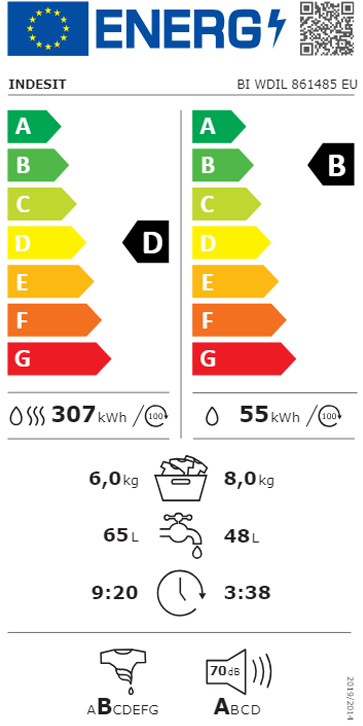Classe de eficiência energética do ciclo de lavagem (Regulação (EU) 2017/1369):B