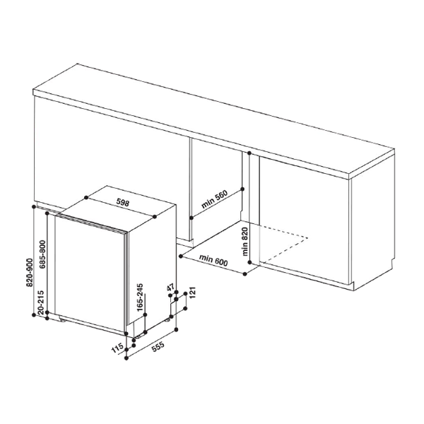 Medidas (axlxp): 820 a 900 x 598 x 555mmencastre > louça encastre464.10NovoProduto disponível €464,10