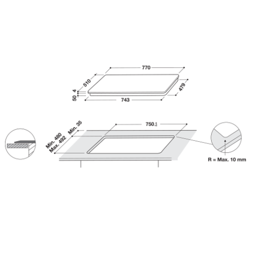 Tipo de controlo : Eletrónico | Níveis de potência : 18+booster | Indicador luminoso | Bloqueio de Comandos | Altura (cm) : 5.4 | Largura (cm) : 77.0 | Profundidade (cm) : 51.0 | Fonte de energia : Elétrico | Número de zonas de cozedura elétricas : 4 | Número de zonas indução : 4 | Temporizador | Posição dos comandos : Frontal | Número total de booster : 4encastre > placas751.08NovoProduto Limitado €751,08