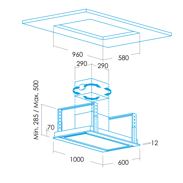 Dimensões (axlxp) 285-500x1000x600mm |