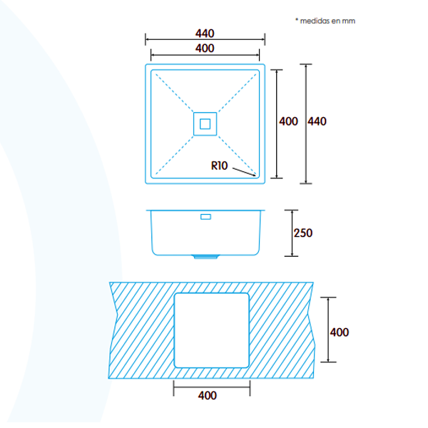 Lava louça sob bancada, de aço inox 304 de 1.2 mm de espessura |