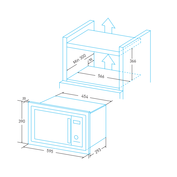 Microondas de encastre de 20 litros,700W e com grill 1000W