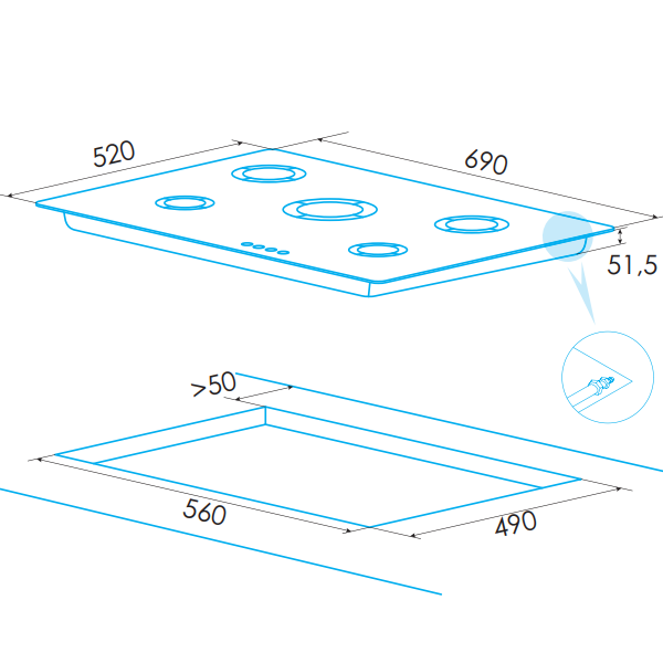Dimensões (axlxp): 51,5x690x520mmencastre > placas304.18NovoProduto Limitado €304,18