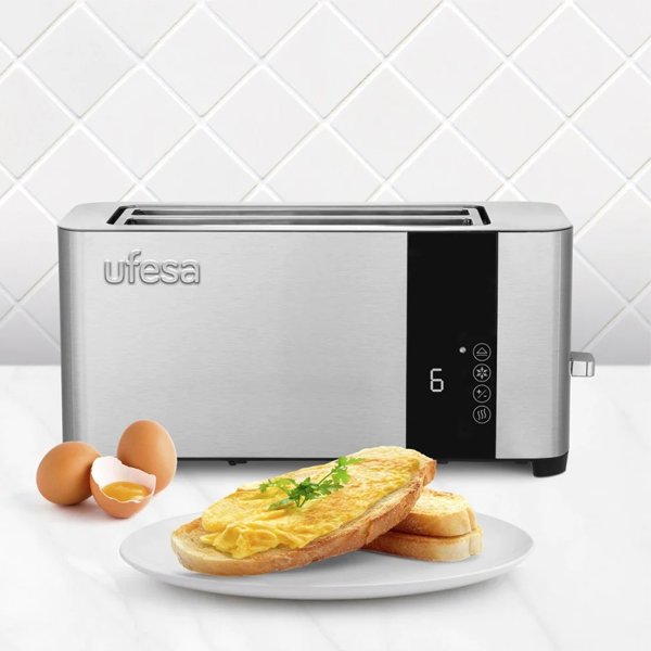 Torradeira em aço inoxidável com ranhura dupla longa |