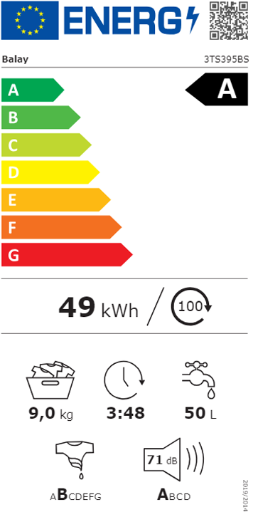 Índice de eficiência energética para o ciclo de lavagem:51.4