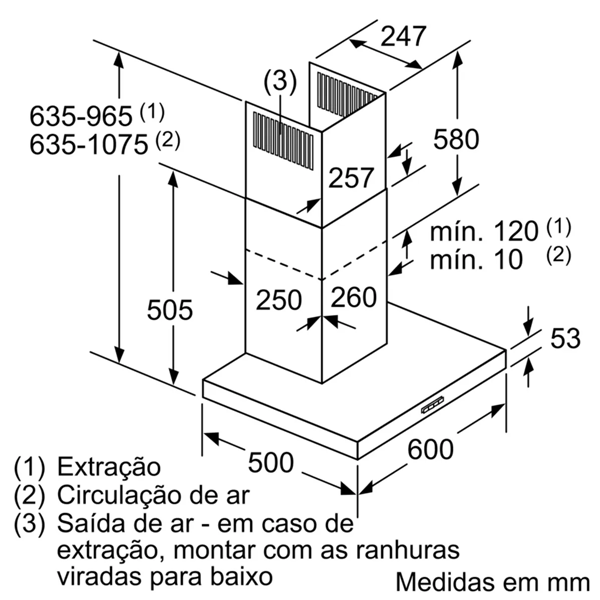 Modos de funcionamento: Saída de ar / Recirculação de ar (Acessório disponível em separado) |