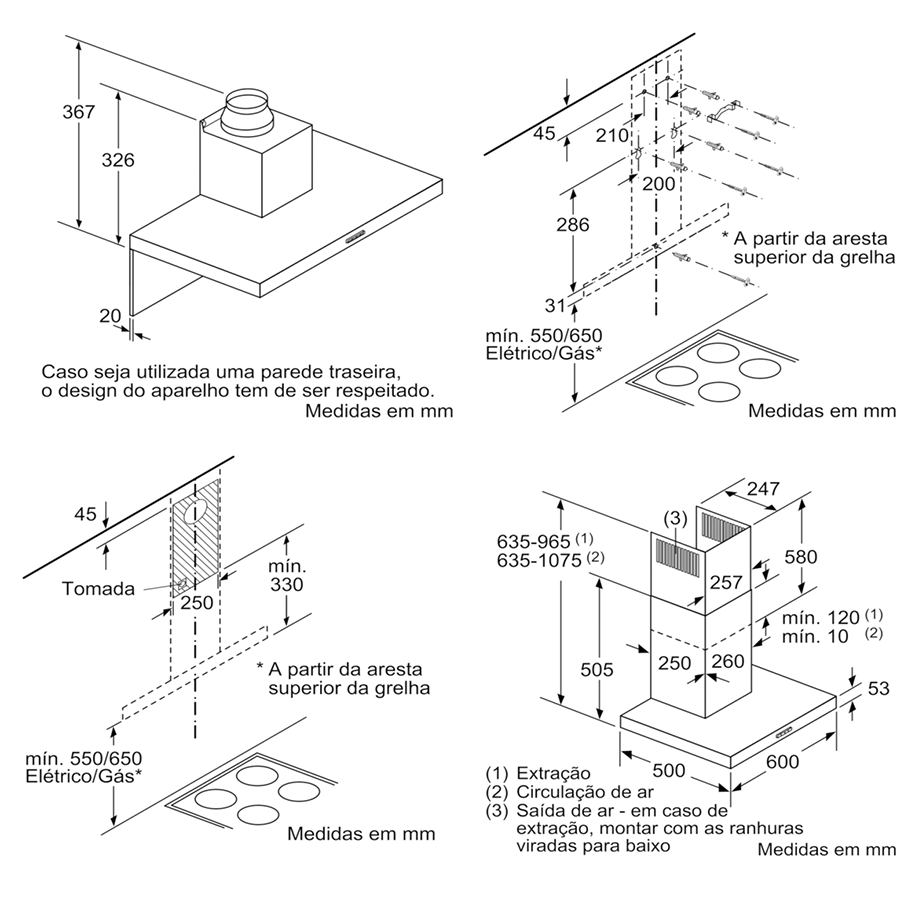Capacidade de extração de acordo com a norma DIN/EN 61591 em modo de saída de ar no nível normal máximo;456 m3/h,nível intensivo 762 m3/h