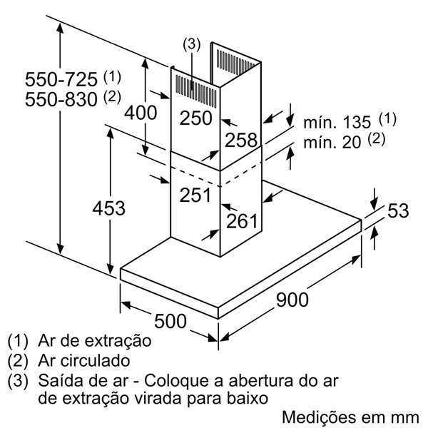 Altura mínima do produto em saída de ar: 550 mm |