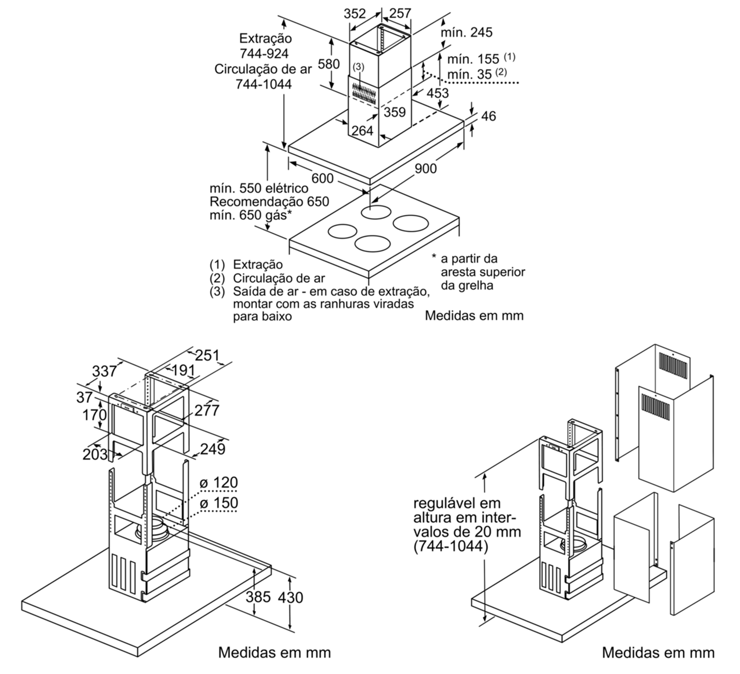 Potência de exaustão em modo de saída de ar de acordo com a norma DIN/EN 61591:nível máximo 438 m3/h;nível intensivo 754 m3/h