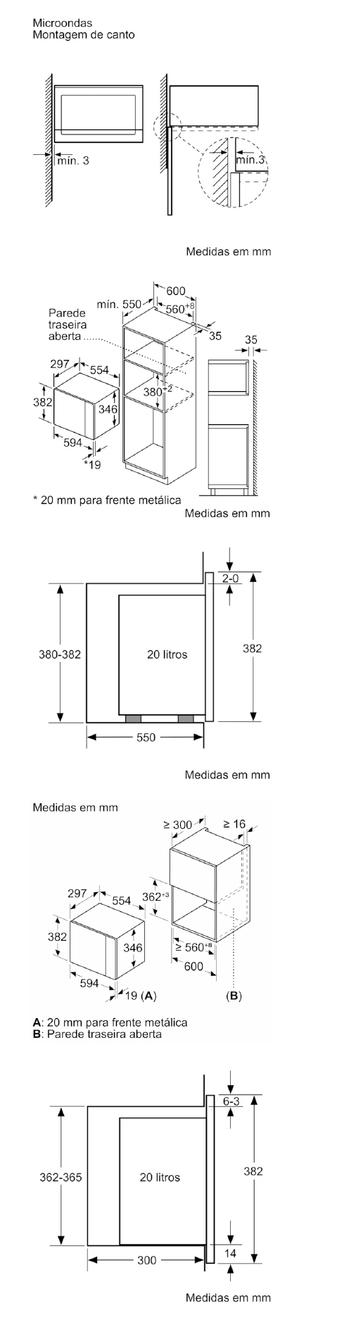 Instalação em armário superior de 60 cm de largura (mínimo 30 cm profundidade), coluna de 60cm de largura |