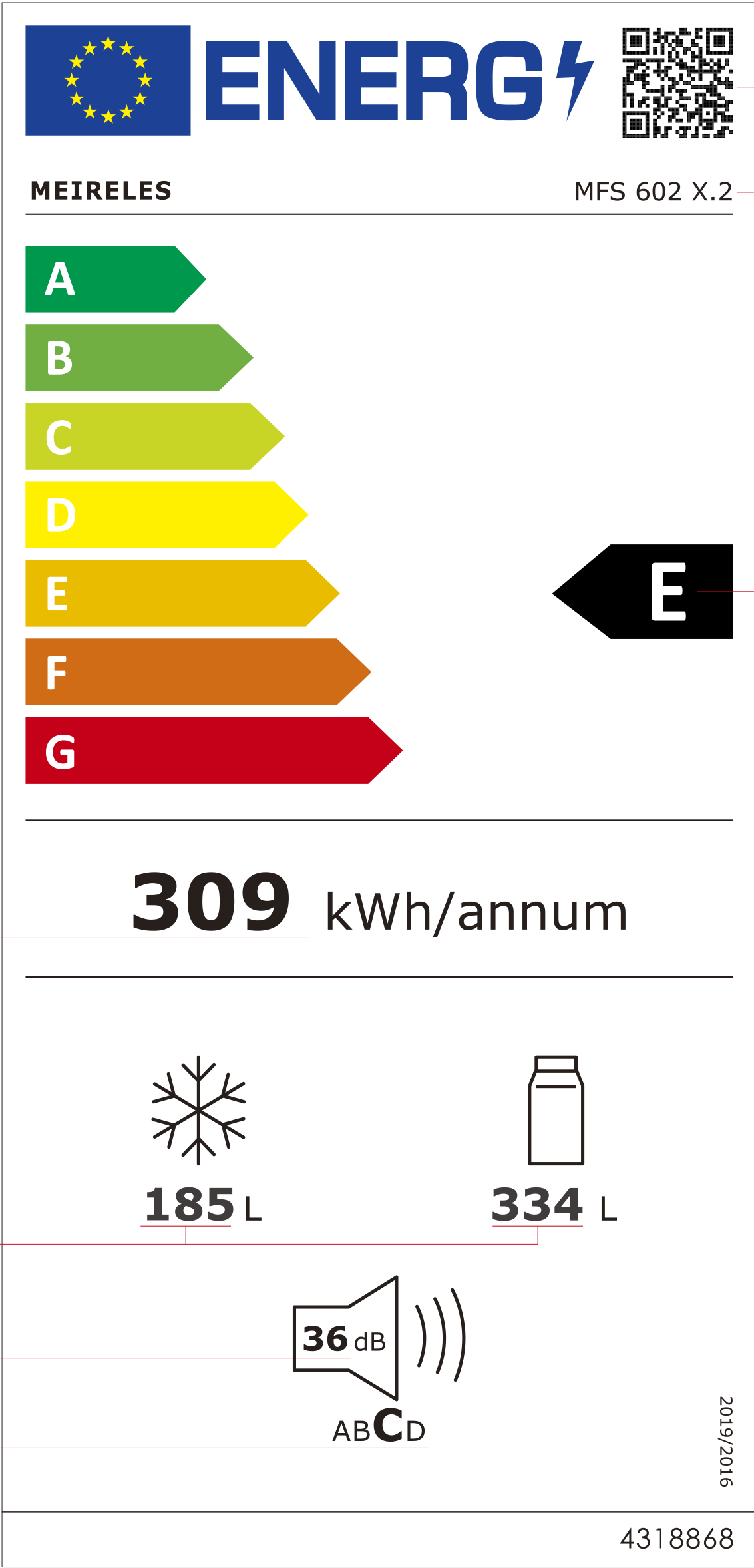Capacidade útil do congelador 185L |