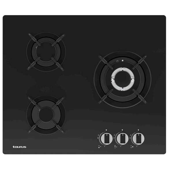 6,35 kW de potência total:Queimador triplo wok de 3500 W,queimador semirrápido de 1800 W e queimador auxiliar de 1050 W.
