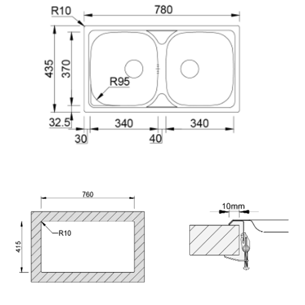 Medida externa: 780x435mm | Medida das cubas: 340x370/340x370mm | Profundidade: 140mm | EmbalagemCaixa Individual | Fornecido Com: Sifão/Válvula manual de cesta 0221110 | Tamanho do móvel: 800mm | Acabamento: Não Polido | Aplicação: Encastrarencastre > lava louças69.07NovoProduto disponível €69,07