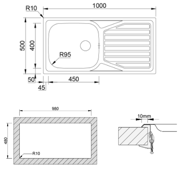 Medida externa: 1000x500mm | Medida das cubas: 450x400mm | Profundidade: 160mm | Fornecido Com: Sifão/Válvula manual de cesta 0211110 | Tamanho do móvel: 600mm | Acabamento: Não Polido | Aplicação: Encastrarencastre > lava louças84.62NovoProduto disponível €84,62