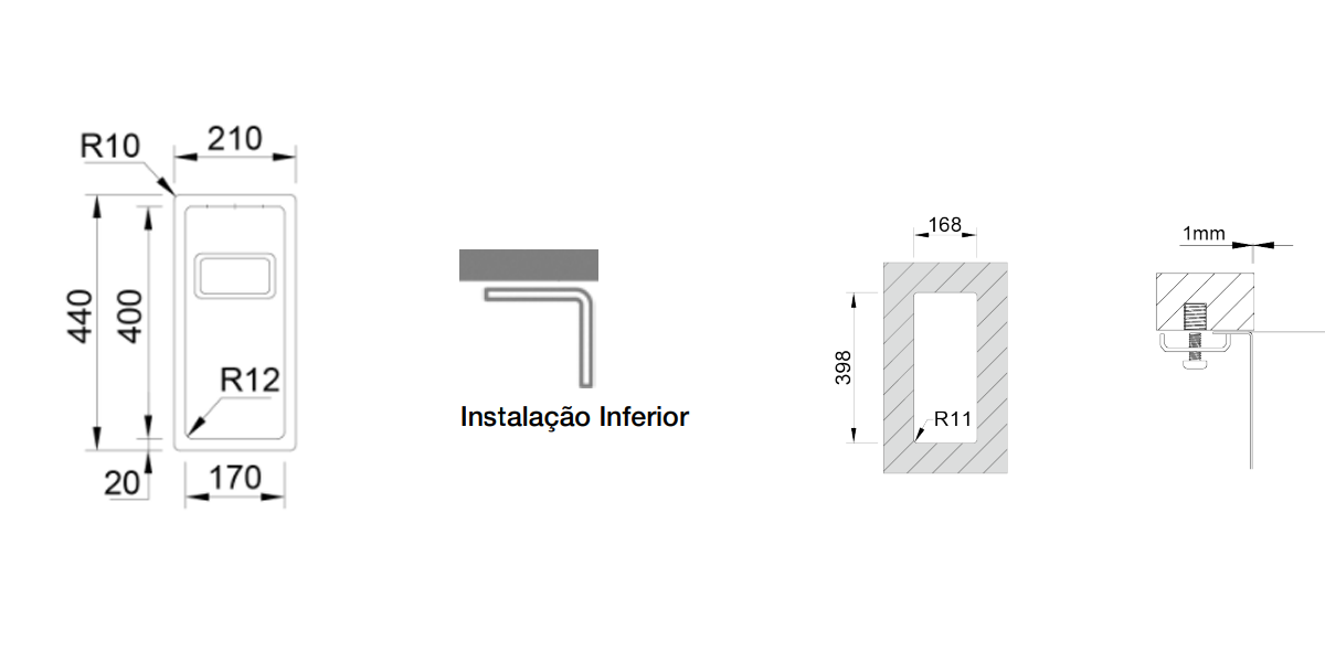 Medida externa: 210x440mm | Medida das cubas: 170x400mm | Profundidade: 170mm | Fornecido Com: Sifão/Válvula manual FIRST 0212247S | Tamanho do móvel: 300mm | Acabamento: Escovado | Aplicação: Inferiorencastre > lava louças308.50NovoProduto Limitado €308,50