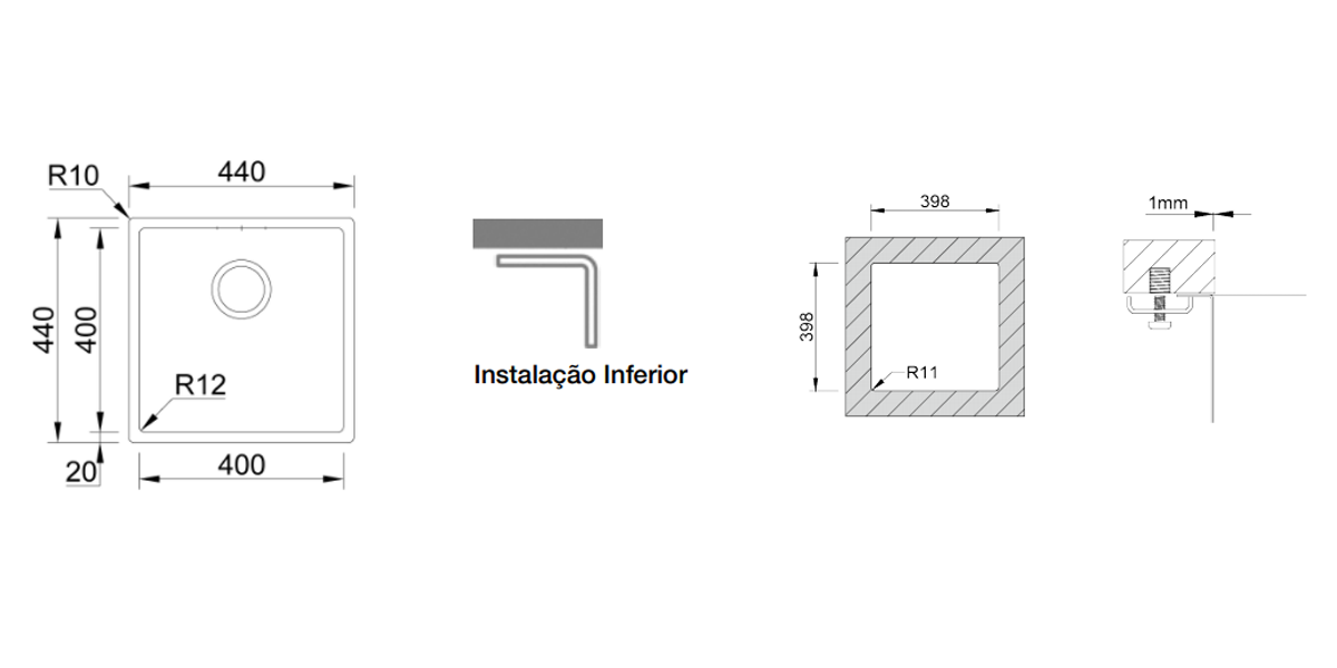 Medida externa: 440x440mm | Medida das cubas: 400x400mm | Profundidade: 200mm | Fornecido Com: Sifão/Válvula manual de cesta 0212249S | Tamanho do móvel: 500mm | Acabamento: Escovado | Aplicação: Inferiorencastre > lava louças281.71NovoProduto Limitado €281,71
