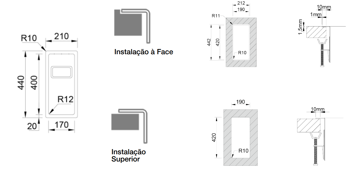 Medida externa: 210x440mm | Medida das cubas: 170x400mm | Profundidade: 170mm | Fornecido Com: Sifão/Válvula manual FIRST 0212247S | Tamanho do móvel: 300mm | Acabamento: Escovado | Aplicação: À face e superiorencastre > lava louças309.37NovoProduto Limitado €309,37