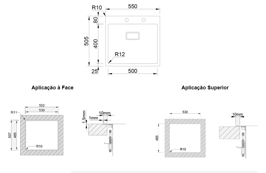 Medida externa: 550x505mm | Medida das cubas: 500x400mm | Profundidade: 200mm | Fornecido Com: Sifão/Válvula automática de cesta 0212442 | Tamanho do móvel: 600mm | Aplicação: Superior e à face | Acabamento: Escovadoencastre > lava louças494.35NovoProduto Limitado €494,35