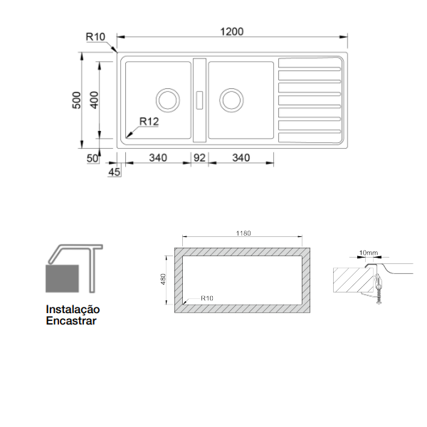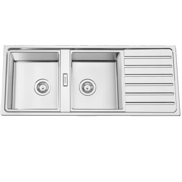 Medida externa:1200x500mm | Medida das cubas: 340x400/340x400mm | Profundidade: 200mm | Fornecido Com:Sifão/Válvula manual de cesta 0221110 + 02714 | Tamanho do móvel: 900mm | Acabamento: Aço inox AISI 304 | Aplicação: encastrarencastre > lava louças505.59NovoProduto Limitado €505,59