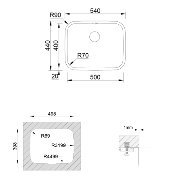 Medida externa: 540X440mm | Medida cuba: 500X400mm | Profundidade: 245mm | Móvel: 600mm | Acabamento: Polido | Aplicação Inferior | Inclui: Sifão/válvula manual de cesta encastre > lava louças140.81NovoProduto Limitado €140,81