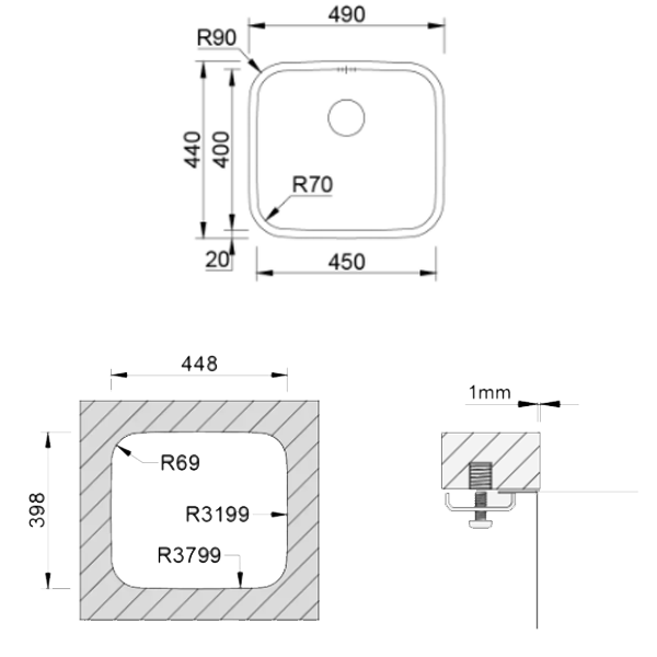 Medida externa: 490x440mm | Medida cuba: 450x400mm | Profundidade: 200mm | Móvel: 600mm | Aplicação: Inferior | Acabamento: Polido | Inclui: Sifão/válvula manual de cesta 0211110encastre > lava louças99.32NovoProduto disponível €99,32