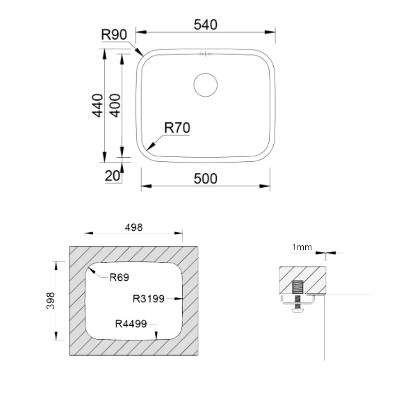 Medida externa: 540x440mm | Medida cuba: 500x400mm | Profundidade: 200mm | Móvel: 600mm | Aplicação: Inferior | Acabamento: Polido | Inclui: Sifão/válvula manual de cestaencastre > lava louças99.32NovoProduto disponível €99,32