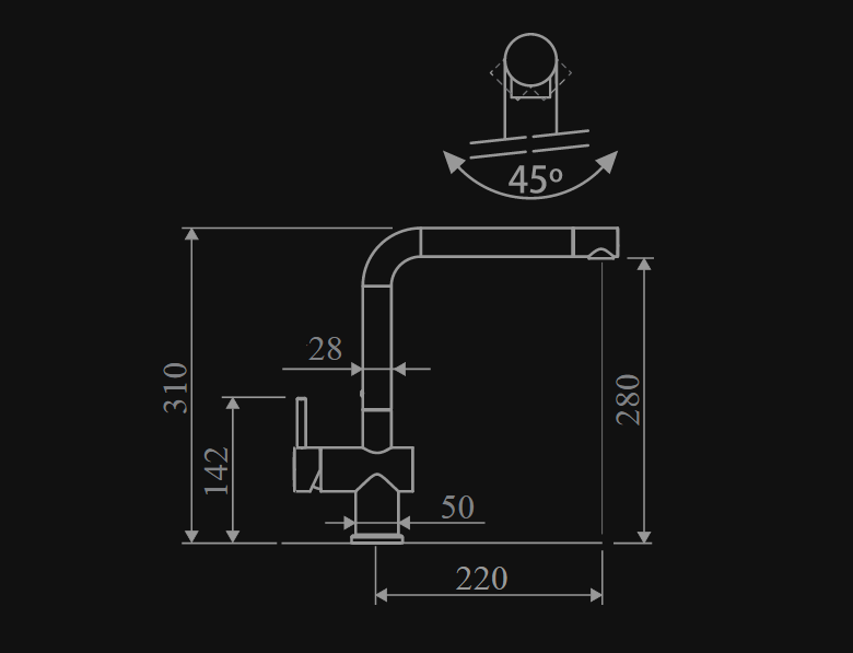Dimensão: | Altura: 310/280mm | Corpo: Ø50mm | Acabamento: Cromado | Características: | Misturadora monocomando de bica giratória. | Perlator anti-calcário. | Flexiveis em aço inox.encastre > misturadoras149.45NovoProduto disponívelDimensão: