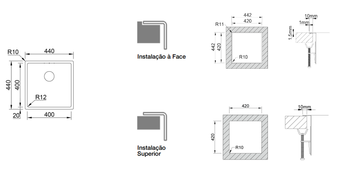 Medida das cubas:400x400mm