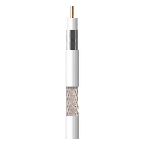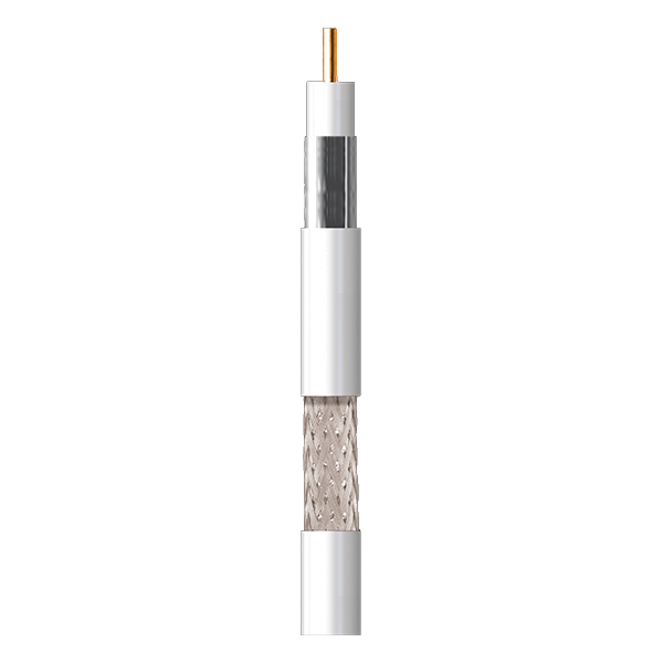 Cabo coaxial com condutor central em cobre e malha em alumínio (Cu/Al),com uma excelente cobertura da malha (77%).