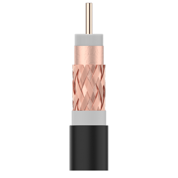 Cabo coaxial com condutor central e malha em cobre (Cu/Cu) com uma excelente cobertura da malha (73%).