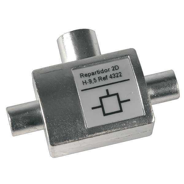 Repartidor inductivo de 2 direcções e conectores CEI, para sinais de TV. Possui um conector fêmea e os outros macho. | Instalação interior, frequêntemente utilizada em tomadas ou TVs. | Conectores CEI | Chassis conexão e blindagem | Passagem de DC bidireccionalrecepção instalação tv-sat > tdt/sat15.47NovoProduto disponívelRepartidor inductivo de 2 direcções e conectores CEI,para sinais de TV.