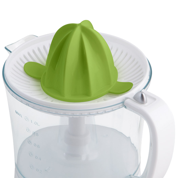 Potência 25W. | Capacidade 1lt. | Depósito extraível com pega. | Regulador de polpa. | 2 cones | Sistema anti gota. | Enrola cabos | Função automática giratória direita / esquerda | Função automática Arranque / Paragem | Tampa transparente | Acessórios laváveis em máquinas de lavar loiça. | Ligação: 230V - 50Hz..pequenos domésticos > cozinha19.63NovoProduto disponívelPotência 25W.