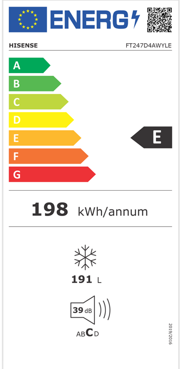 Consumo de energia anual: 198kWh/ano |