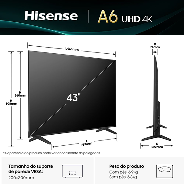 Compatível com suporte VESA Wall Mount: 200x300mmelectrónica consumo > tv283.44NovoProduto disponível €283,44