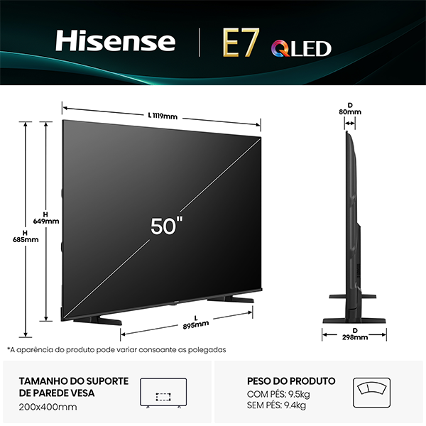 Compatível com suporte VESA Wall Mount: 200×400mmelectrónica consumo > tv368.15NovoProduto Limitado €368,15