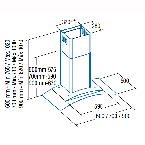 Capacidade de extração máxima –mínima (Reg.(UE) nº65/2014):800 m3/h - 340 m3/h