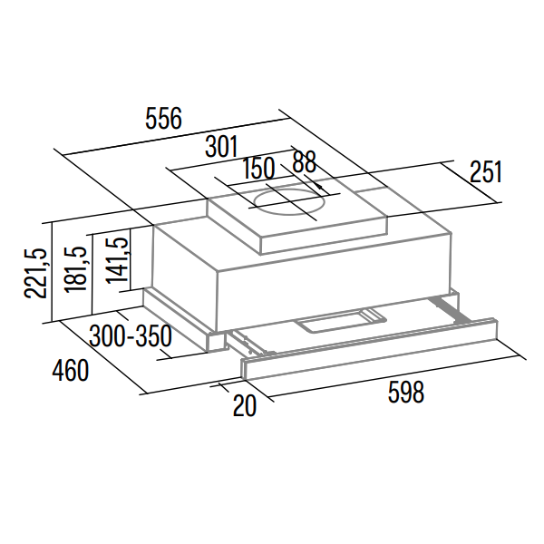 Dimensões (axlxp): 221,5x600x300-350mmencastre > exaustão encastre248.86NovoProduto Limitado €248,86