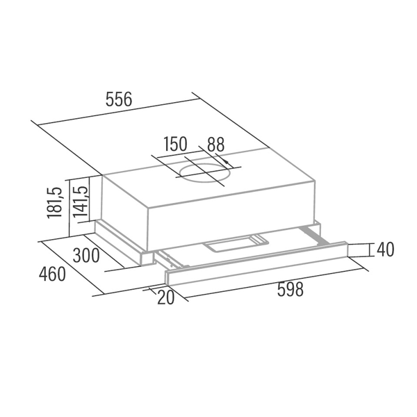 Dimensões (axlxp): 221,5x600x300mmencastre > exaustão encastre152.66NovoProduto disponívelPainel de Controlo Tátil com display digital, com temporizador de desconexão automática e indicador de limpeza de filtros